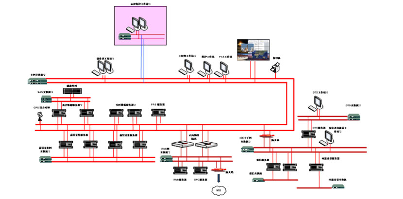 全廠電氣綜合自動化系統通信網採(cǎi)用赫斯曼交換機,以環網和放射網混合組網方式集成瞭(le)東方電子220kV站子站,第三方廠家三個區域(煉油區、化工區、動力區)110kV電壓等級以下變電站子站、五防系統。