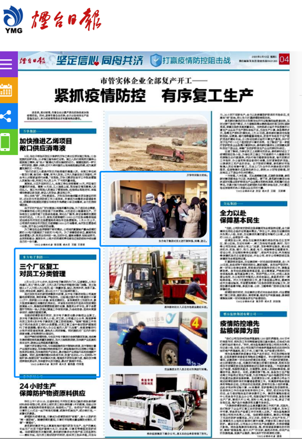 面對突發而來的新冠病毒肺炎疫情,東(dōng)方電(diàn)子集團有限公司高度重視疫情防控,周密部署,嚴格防範。已經通過國外客戶渠道進口口罩2.2萬個、防護服3200餘套,緊急支援疫區。緊急調度員工加班加點(diǎn),最大限度保障疫區消毒機機殼供應。並(bìng)緊急協助煙台市政府開發疫情防控調查APP,搭建起疫情管控數據的收集、整理和分析平台,便於(yú)各管理環節特别一線人員登記調查工作有效開展,爲各級黨委、政府決策提供實時、準確(què)的數據支撐。