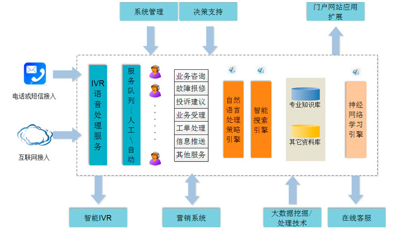 客戶呼叫中心管理系統綜合瞭坐席排班管理、話務工單處理、話務預警監控、客服評價管理、短信管理等多個功能模塊,可實現全過程有序管理以及與營銷(業務)系統無縫銜接。通過集成IVR交互式語音自助應答系統,支持用電戶語音自助服務和話務分流,有效提高呼叫應答效率。客戶呼叫中心管理系統作爲企業服務的“無形窗口”,實現瞭企業與客戶的零距離溝通,可有效解決企業拓展服務渠道、獲取客戶訴求、優化企業管理、提升服務效能等多方面發展痛點問題。