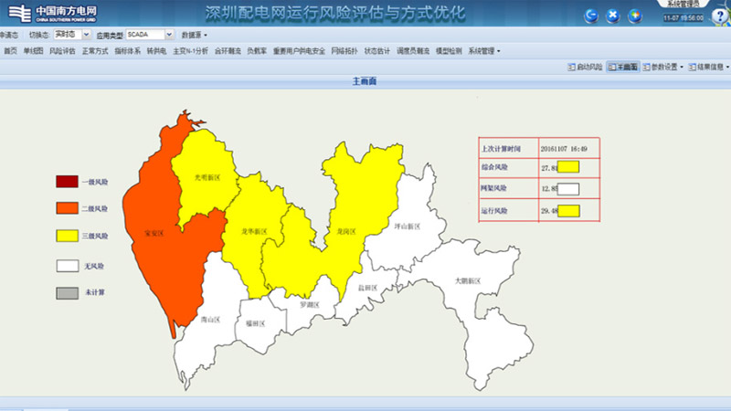 針對當前缺少分析配電網風險的方法和工具、風險評估和配電網運行狀态關聯不緊密、風險評估缺乏系統自動計算等現狀,系統考慮實時運行風險和網架結構缺陷帶來的潛在風險,從實時運行和網架結構兩個方面建立風險評估體系,並(bìng)進行量化計算及風險定級,使得風險評估能夠準確(què)反應配電網風險的物理本質,並(bìng)從單一饋線向多層次的區域配電網拓展,在配電網狀态估計和潮流計算的基礎上,關注配電網的動态變化,實現風險在線評估的實用價值。