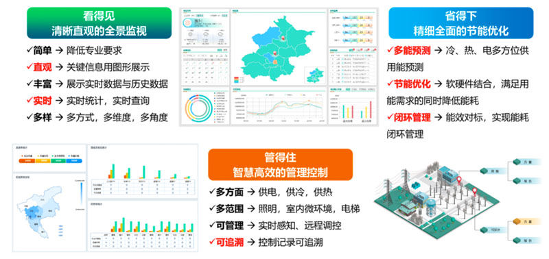 提供設備(bèi)層(céng)、企業層(céng)、園區層(céng)、電網層(céng)等各層(céng)級冷熱電氣水綜合能源網絡的能源管理服務,降低用能成本,提升能源利用效率,減少運維人力需求。